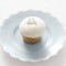 Peach champagne cupcake with juicy peach chunks, topped with a champagne swiss meringue buttercream.